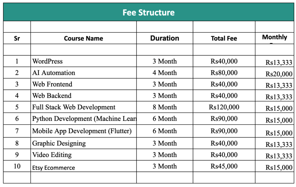 Fee Structure NoteDifferent scholarship programs can be offered for needy students.An internship can be offered to brilliant students on the successful completion of the course.Any type of Fee is non-refundable & non-transferable.The Institute reserves the right to change fee structure and policies from time to time.Registration fee of Rs. 1000 is applicable for all courses. Would you like to take a training from us? Apply Now